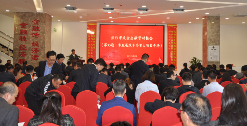 2019年4月17 日上午,焦作市政金企融資對接會(第33期?市發(fā)改委重大項目專場)在市智慧金融服務(wù)有限公司舉行,市投資集團有限公司副總經(jīng)理郭中強、建投公司董事長關(guān)玉紅參加會議。